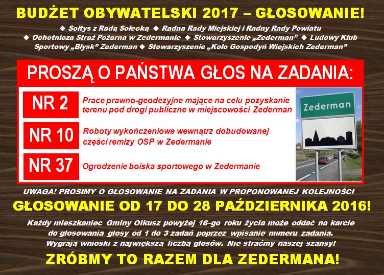 - Przed nami najważniejszy etap trzeciej edycji Budżetu Obywatelskiego Olkusza – głosowanie na zaproponowane przez Mieszkańców Miasta i Gminy Olkusz zadania. Realizacji dostąpią te, które do 28 października zyskają największe poparcie. Do oddania głosu zapraszam wszystkich mieszkańców Gminy Olkusz, którzy ukończyli 16 rok życia. Można to będzie uczynić osobiście w jednej ze wskazanych poniżej lokalizacji lub przez Internet. Dzięki Budżetowi Obywatelskiemu mają Państwo dodatkową możliwość decydowania o swoim najbliższym otoczeniu. Gorąco Państwa zachęcam do skorzystania z tej szansy - mówi burmistrz Roman Piaśnik.